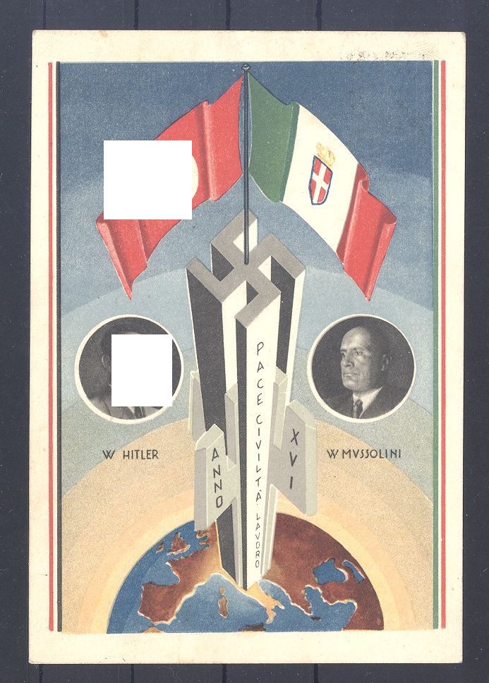 Deutsches Reich, interessante farbige italienische Propagandakarte Hitler - Mussolini.