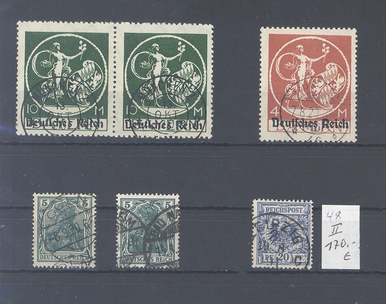 Deutsches Reich, kleiner gestempelter Spezialposten aus den Jahren 1875/1920. Es sind die Michel Nummern 48 II,85 II d, 85IIe, 135II und 137 mit 137 III im Paar vorhanden. Vieles ist geprüft.