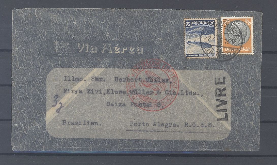 Deutsches Reich, schöner Luftpost Brief aus dem Jahr 1934 frankiert mit 150 Pfg. MiF aus Wuppertal nach Brasilien mit rückseitigem Ankunftsstempel gelaufen. Nette Ergänzung zur Sammlung!
