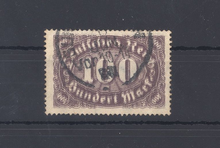 Deutsches Reich Michel Nummer 247 DD, die 100 Mark Freimarke 1923 mit Doppeldruck gestempelt in ordentlicher Bedarfserhaltung. Es liegt ein FA BPP, hat bereits einiges gekostet, ist mit eingescannt.