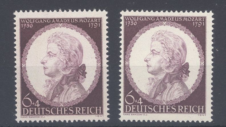 Dt. Reich Michel Nr. 810 II + III, Mozart 1941 mit Plattenfehlern II und III **