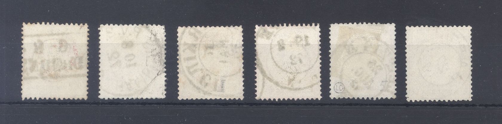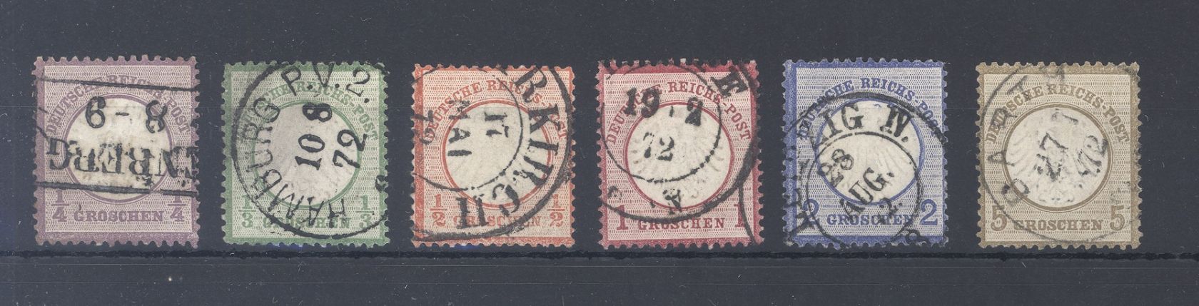 Deutsches Reich Michel Nummer 1/6, die Groschen Ausgaben kleines Brustschild gestempelt. Die Michel Nummer 6 hat einen hellen Bereich, aber auch viele Werte mit sehr schönen Stempeln.