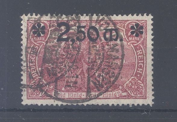 Deutsches Reich Michel Nummer 118b, 2,50 Mark Freimarken 1920 in der Farbe b gestempelt. Der Wert ist geprüft Infla und BPP.