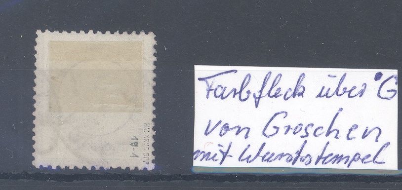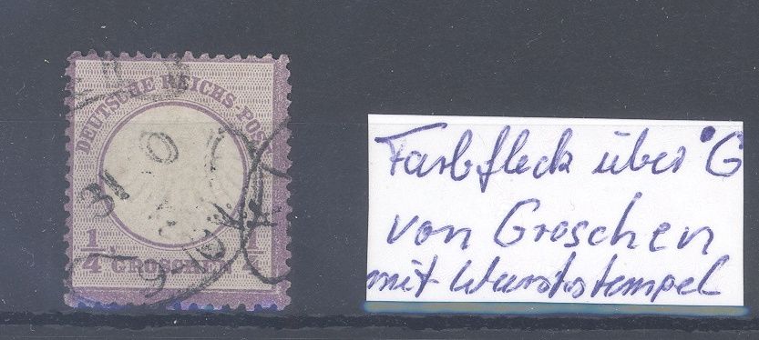 Deutsches Reich Michel Nummer 16, 1/4 Groschen großes Brustschild mit einer deutlichen Besonderheit "Farbfleck über G" und zudem besseren Stempel. Der Wert ist geprüft BPP.