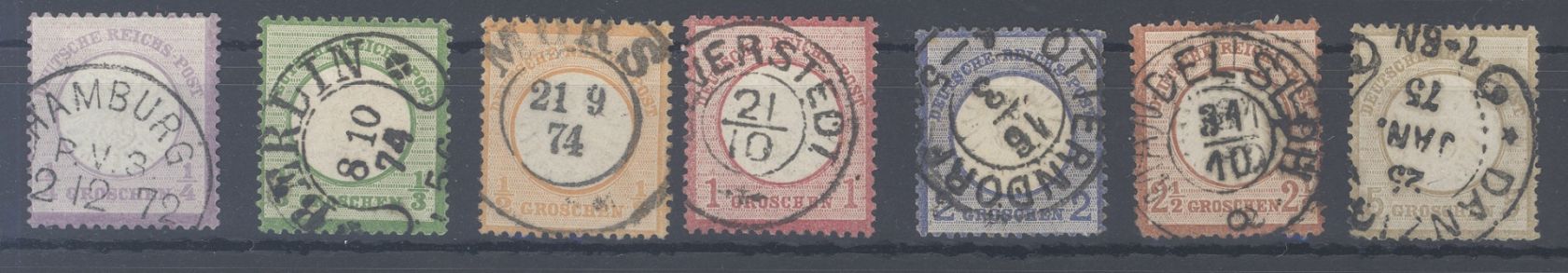 Deutsches Reich Mi.Nr. 16/22, die Groschen Ausgaben des großen Brustschildes gestempelt. Ein ordentlicher Satz mit sehr schönen Stempeln.