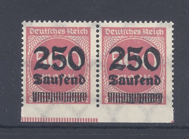 Deutsches Reich Michel Nummer 295 Uu, 250 Tsd. Freimarke 1923 unten ungezähnt als ** Paar. Beide Werte sind geprüft, nette Ergänzung zur Sammlung!