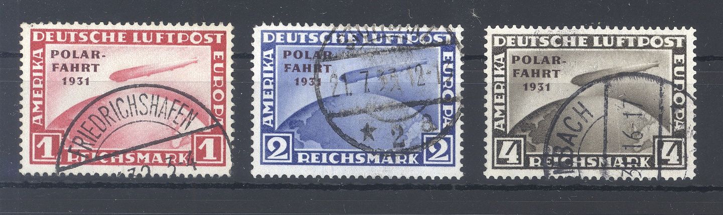 Deutsches Reich Michel Nummer 456/58, Polarfahrt 1931 gestempelt in der üblichen Bedarfserhaltung.