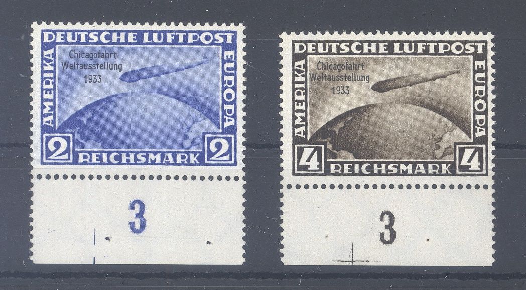 Deutsches Reich Michel Nummer 497/98 aus Chicagofahrt 1933 **, schöne Werte sogar einheitlich vom Unterrand. Es liegt ein Befund BBP vor, hat bereits einiges gekostet, ist mit eingescannt.