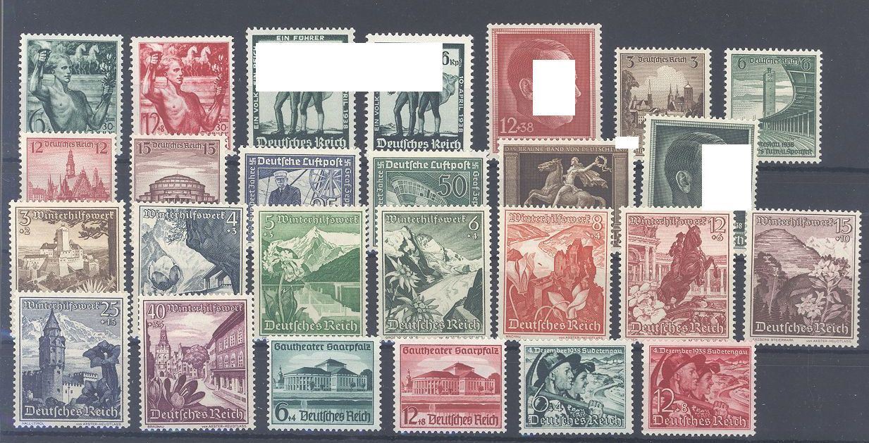 Deutsches Reich Michel Nummer 660/85, der Jahrgang 1938 in den Hauptnummern komplett **, dabei auch die Michel Nummer 684/85 als Eckrandpaar.