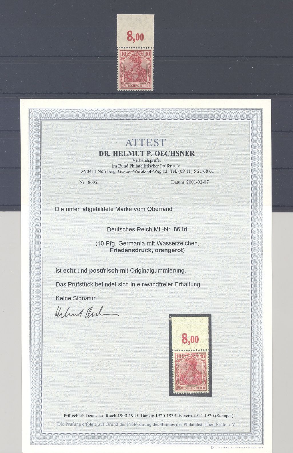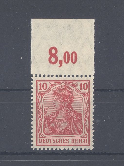 Deutsches Reich Michel Nummer 86 I d, 10 Pfg. Freimarke 1915 in der Farbe d ** vom Platten Oberrand, ein schöner Wert. Es liegt ein FA BPP vor, hat bereits einiges gekostet, ist mit eingescannt.