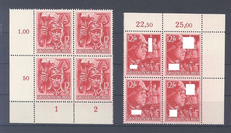 Deutsches Reich Michel Nummer 909/10, Freimarken 1945 in ** Randviererblöcken sogar vom Eckrand. Nette Ergänzung zur Sammlung!