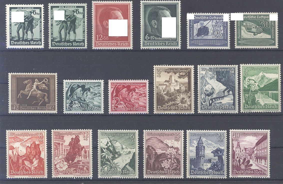 Deutsches Reichm, ** Posten aus dem Jahr 1938 bestehend aus Michel Nummer 662, 663, 664, 669/70, 671, 672, 673/74, 675/83 und 684/85 auf Steckkarte.