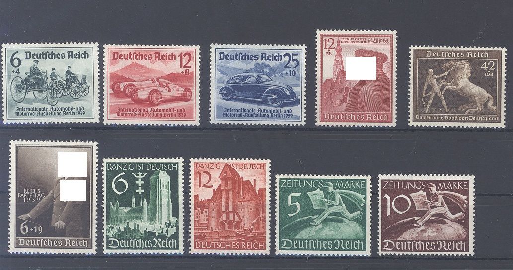Deutsches Reich, kleinerer ** Posten aus dem Jahr 1939 auf Steckkarte. Es sind die Michel Nummern 686/88, 691, 699, 87701, 714/15 und Z 738/39 vorhanden.