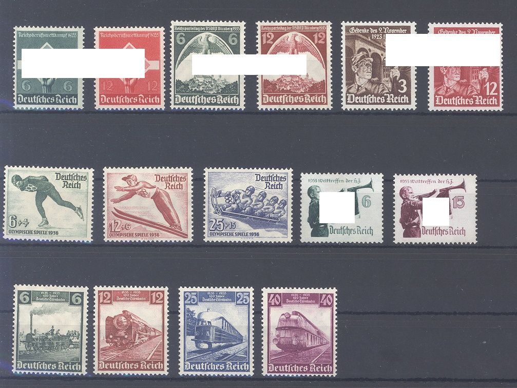 Deutsches Reich, ** ** Posten aus dem Jahr 1935 bestehend aus Michel Nummer 571/72, 580/83, 584/85, 586/87, 598/99 und 600/02.