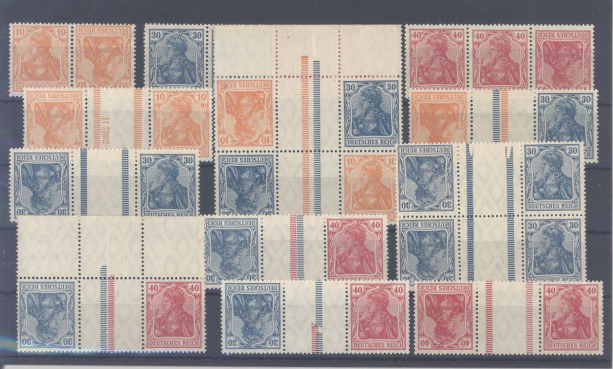Deutsches Reich, netter ** Posten Germania Zusammendrucke als Posten auf Steckkarte, einfach zusammengesteckt.