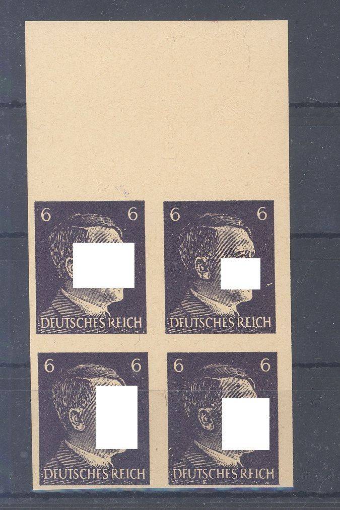 Deutsches Reich Probedruck Michel Nummer 785 P, 6 Pfg. Freimarke 1941 als ** Viererblock vom Oberrand.