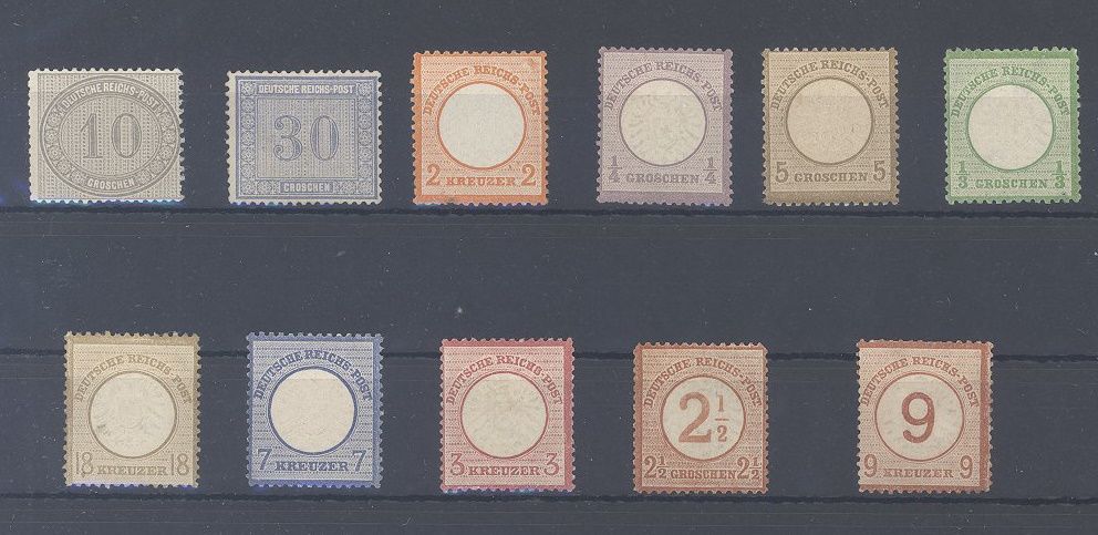 Deutsches Reich, interessanter ungebrauchter Posten aus Michel Nummer 1/30, Freimarken 1872/74 in wie üblich etwas unterschiedlicher Erhaltung auf Steckkarte.