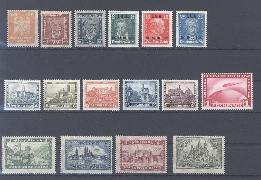 Deutsches Reich, ungebrauchter * gestempelter Posten besserer Sätze auf Steckkarte, dabei auch bessere Werte und Sätze.