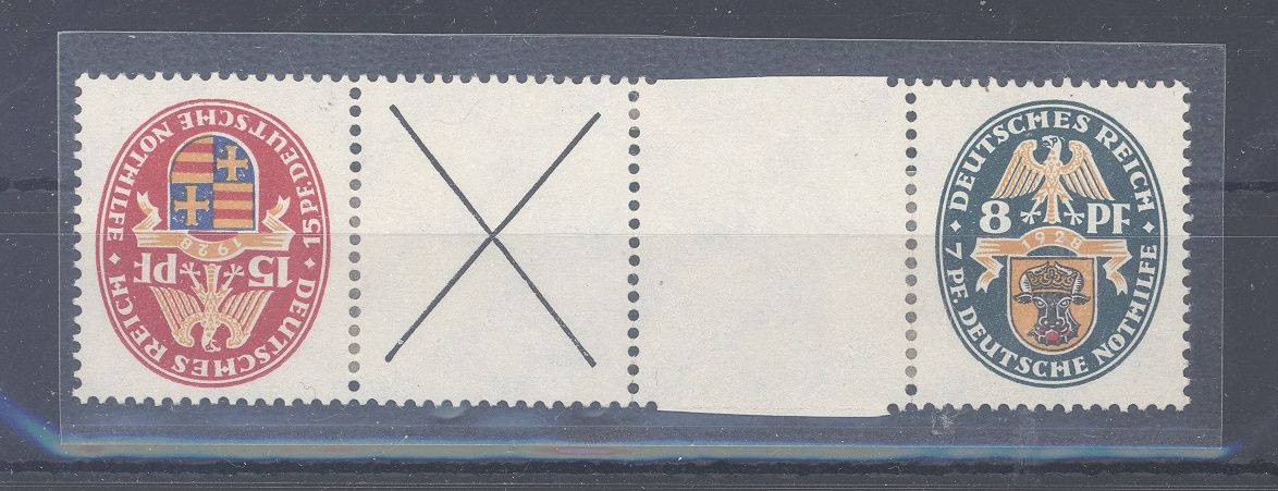 Deutsches Reich Zusammendruck Michel Nummer KZ 11 aus Nothilfe 1928 ungebraucht *, rückseitig mit zwei Falzen fixiert. Selten einmal angeboten.