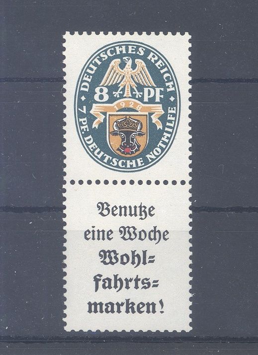 Deutsches Reich Zusammendruck Michel Nummer S 62, 8 Pfg. Nothilfe 1928 **.
