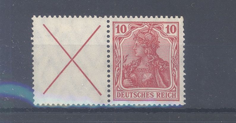 Deutsches Reich Zusammendruck W 4b, 10 Pfg. Germania 1912 ungebraucht * mit auch ein paar kürzeren Zähnen.