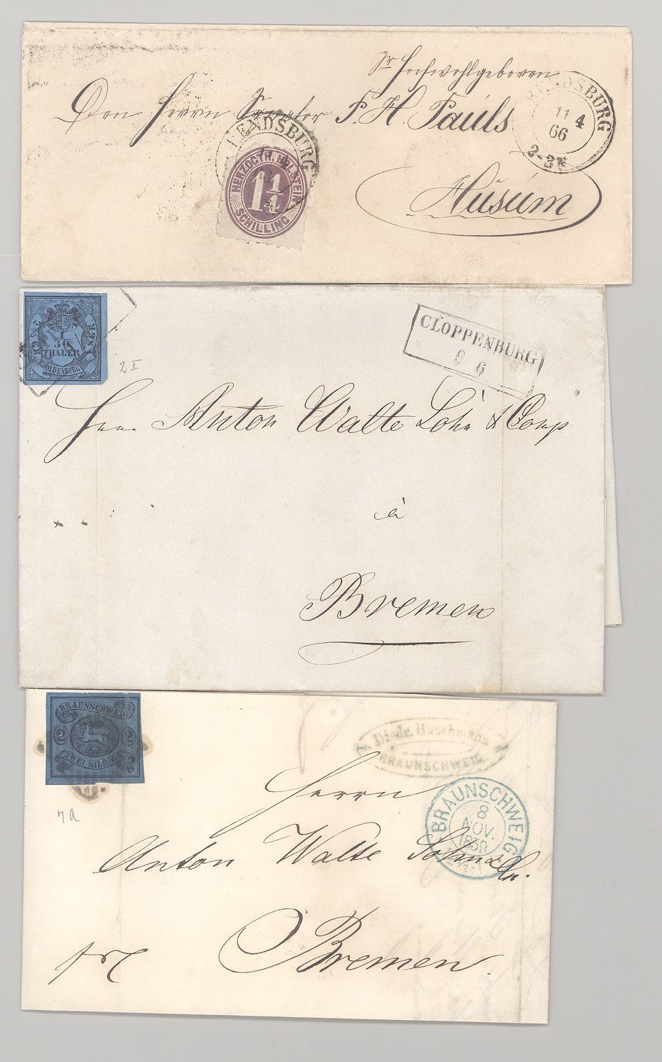 Altdeutschland, drei Briefe mit verschiedenen Frankaturen aus kleinen Staaten. Nette Ergänzung zur Sammlung!