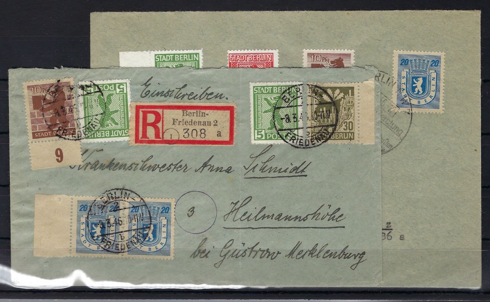 Berlin & Brandenburg, 2 belege mit PF Mi 1A XVII, 1 A VIII und 2x 6 A I