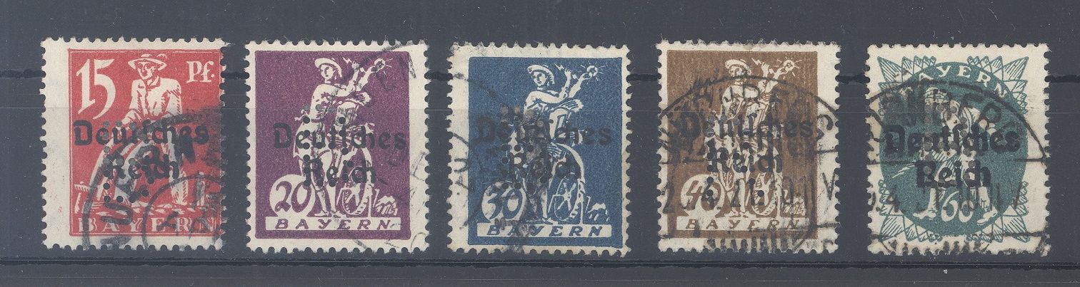Bayern Portofreiheit Michel Nummer 18/21 und 23 aus Freimarken Beamtenräte 1920 gestempelt. Selten einmal angeboten.