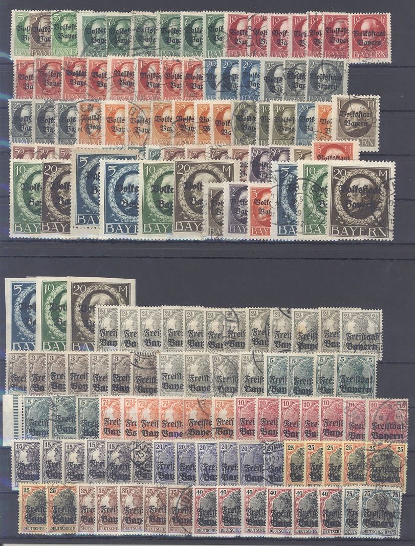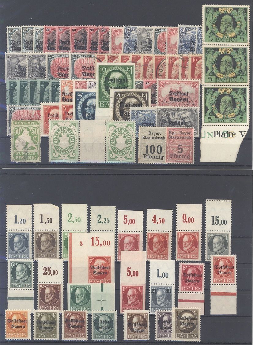 Bayern, umfangreicher Posten ab 1911 auf vier Steckkarten, dabei auch eine Steckkarte mit ** meist Oberrandwerten, einfach zusammengesteckt. Vollkommen unberechnet, sollte bereits aufgrund der Materialfülle ein nettes Schnäppchen sein...