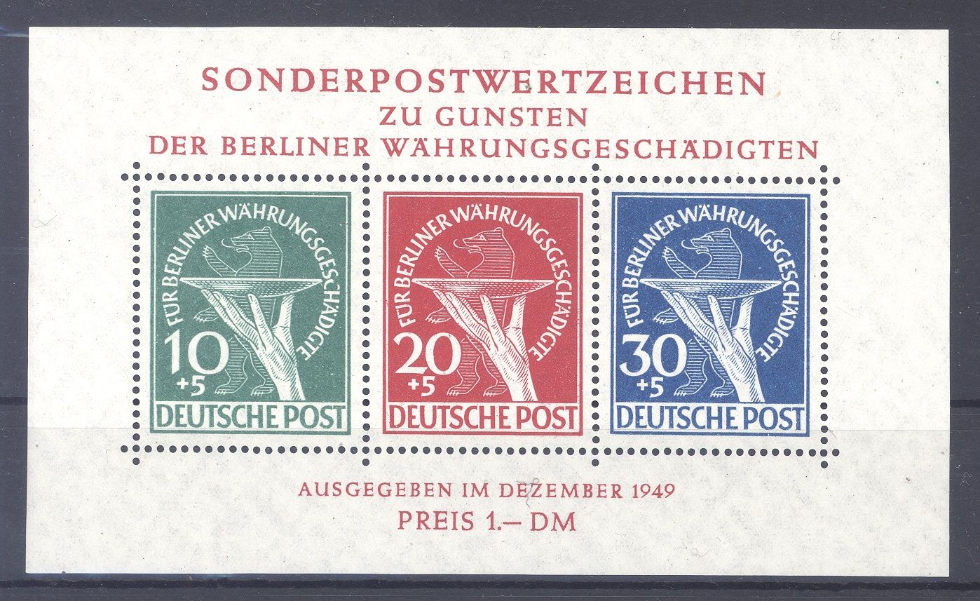 Berlin Block 1 II, der Währungsgeschädigte Block 1949 mit dem Plattenfehler II **.