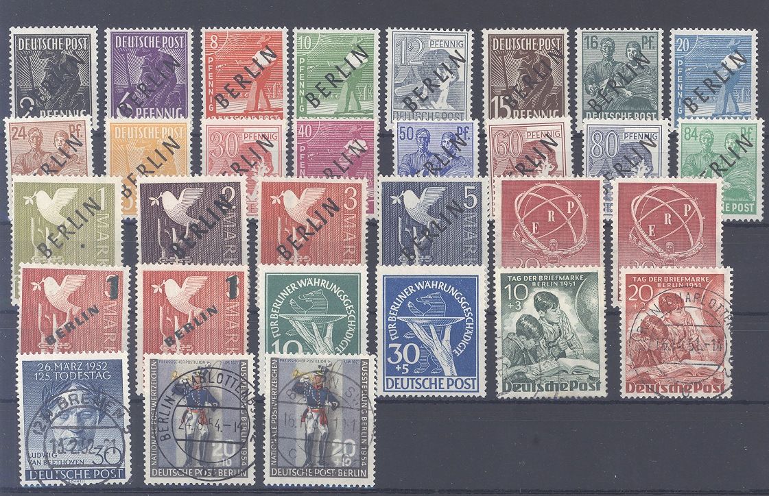 Berlin, interessanter Posten ab Michel Nummer 1/20 auf Steckkarte mit vielen besseren Werten, einfach zusammengesteckt. Sollte ein nettes Schnäppchen sein...