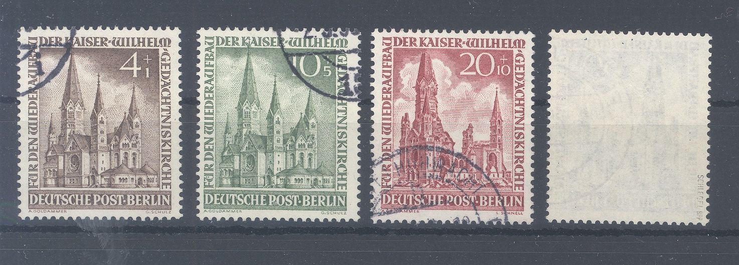 Berlin Michel Nummer 106/09, Gedächtniskirche 1953 gestempelt. Der Hauptwert Michel Nummer 109 ist geprüft BPP.