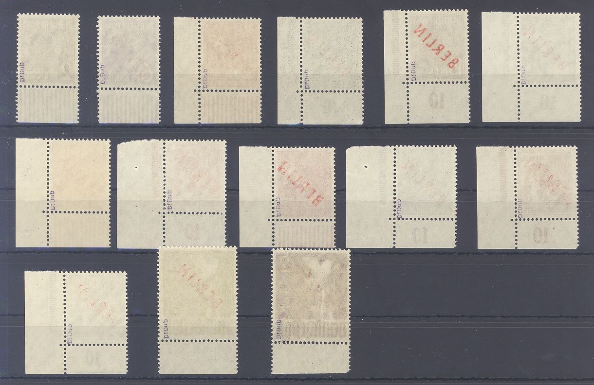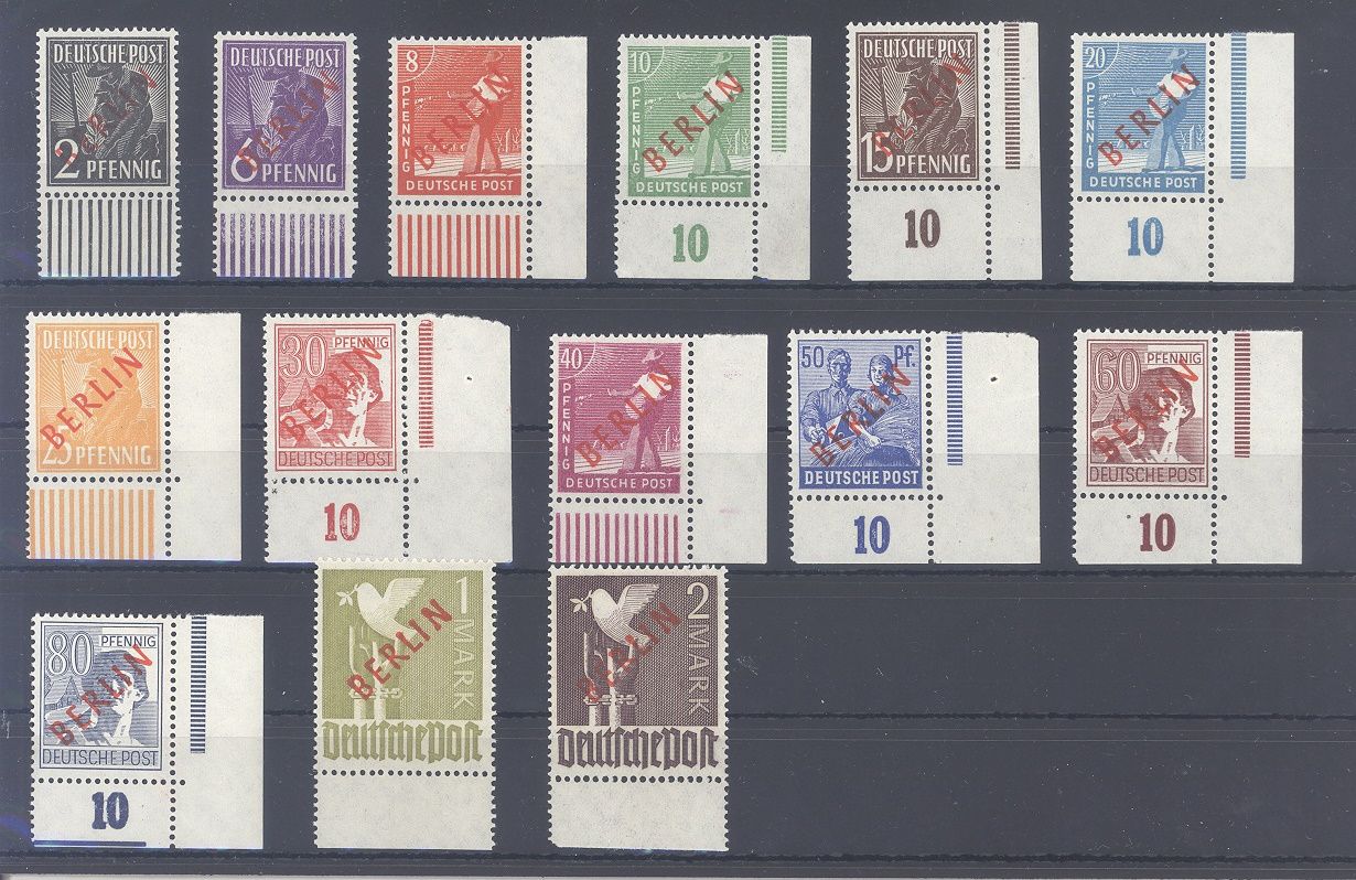 Berlin Michel Nummer 21/34 Rotaufdruck 1949 als ** Randsatz, meist sogar Eckrand! Jeder Wert ist geprüft mit Altprüfung, sehr nett!