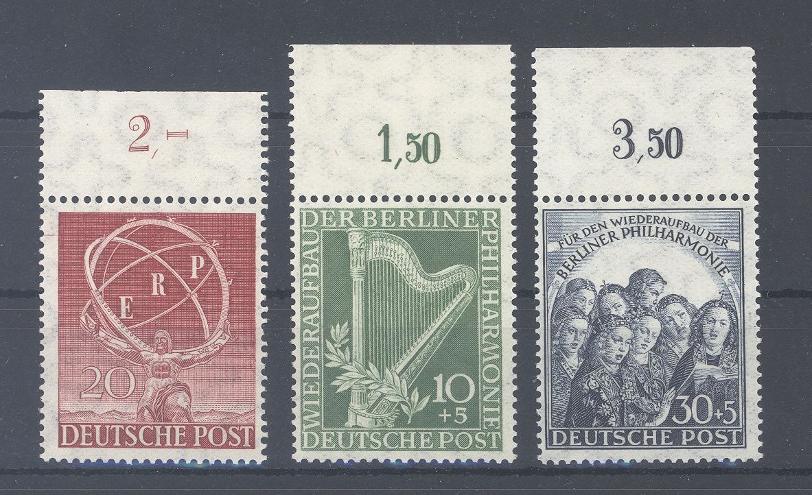 Berlin Michel Nummer 71/73, Jahrgang 1950 **. Alle Werte sind vom Oberrand, nett!