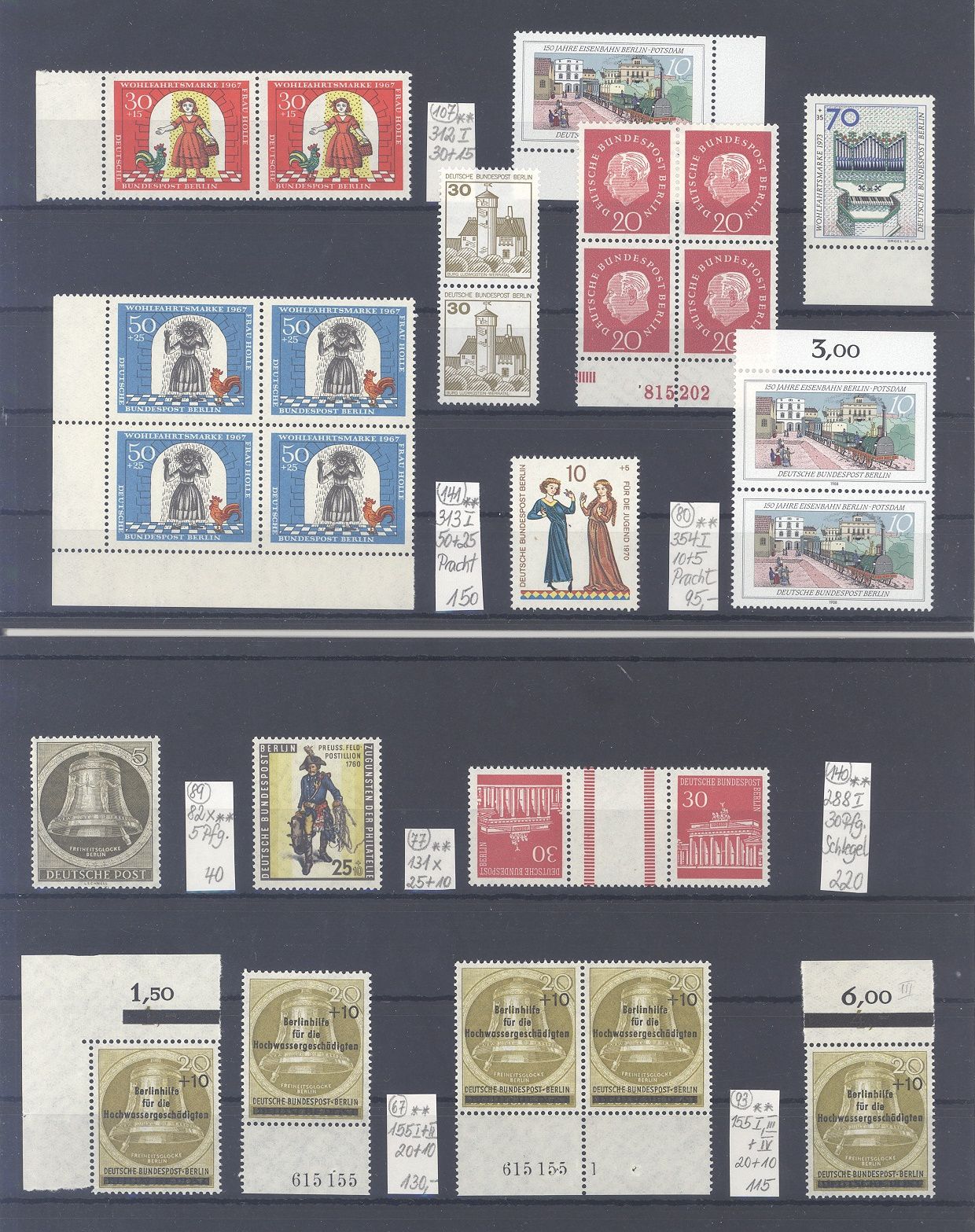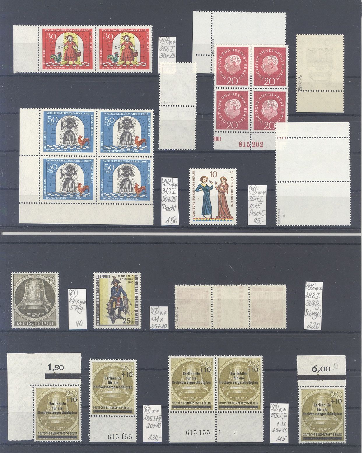 Berlin, interessanter ** Posten Abarten auf zwei Steckkarten, zwei Werte sind geprüft BPP, die Zettel des Sammlers sind beigefügt, nette Ergänzung zur Sammlung!
