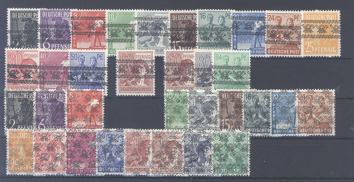 Bizone Michel Nummer 36/51 I+II, Überdruckausgaben 1948 incl. Michel Nummer 49 I **, diese ist geprüft BPP.