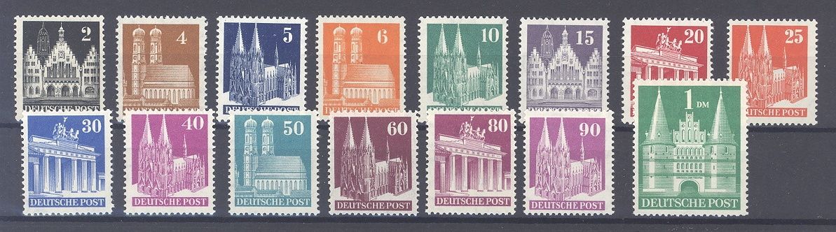 Bizone Mi.Nr. 73/100 wg, Bauten enge Zähnung **.