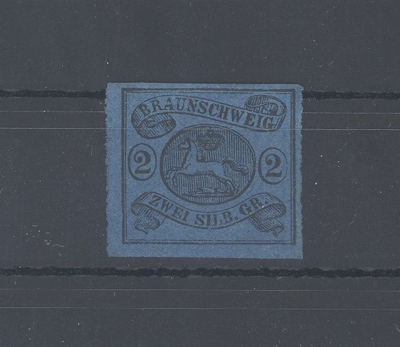 Braunschweig Michel Nummer 15, 2 Sgr. Freimarke 1864 ungebraucht (*), zwei Seiten mit Scherenschnitt. Selten einmal angeboten.