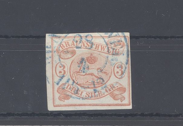 Braunschweig Michel Nummer 3, 3 Sgr. Freimarke 1852 gestempelt.