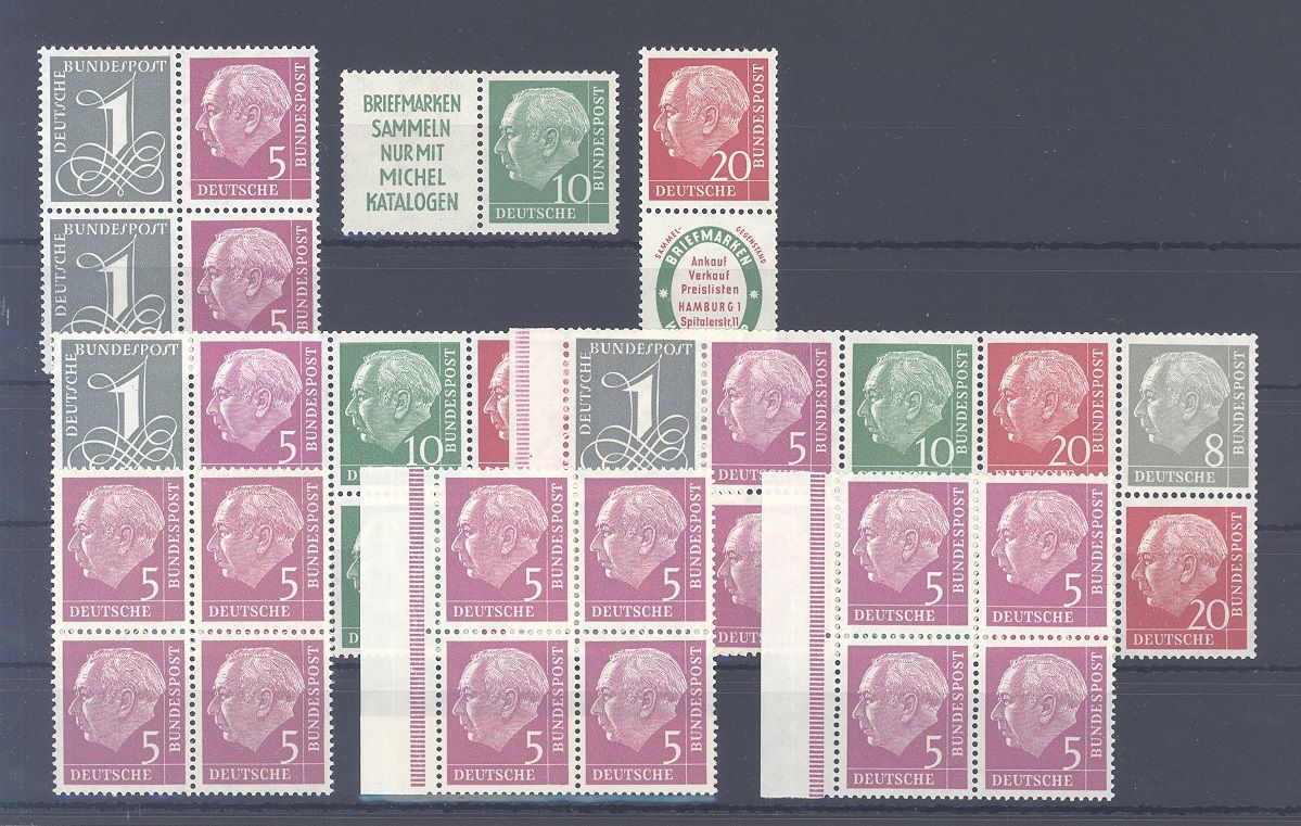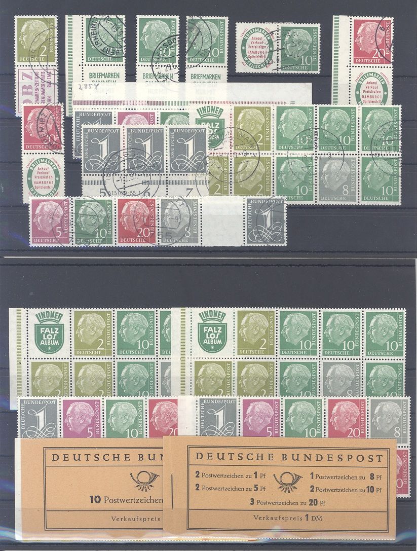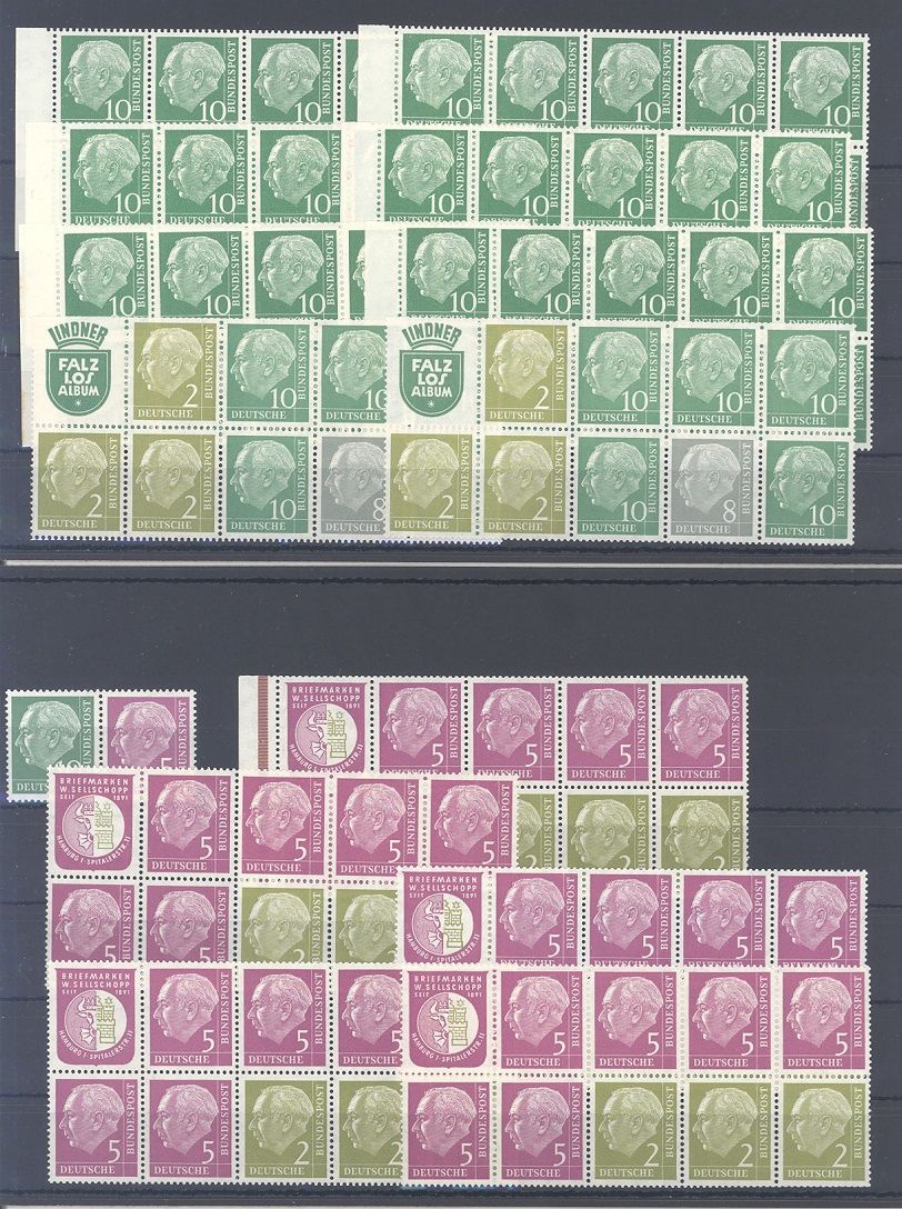 Bund, enormer Posten **/gestempelter Heuss Zusammendrucke auf fünf Steckkarten, einfach zusammengesteckt. Vollkomm unberechnet, sollte ein nettes Schnäppchen sein