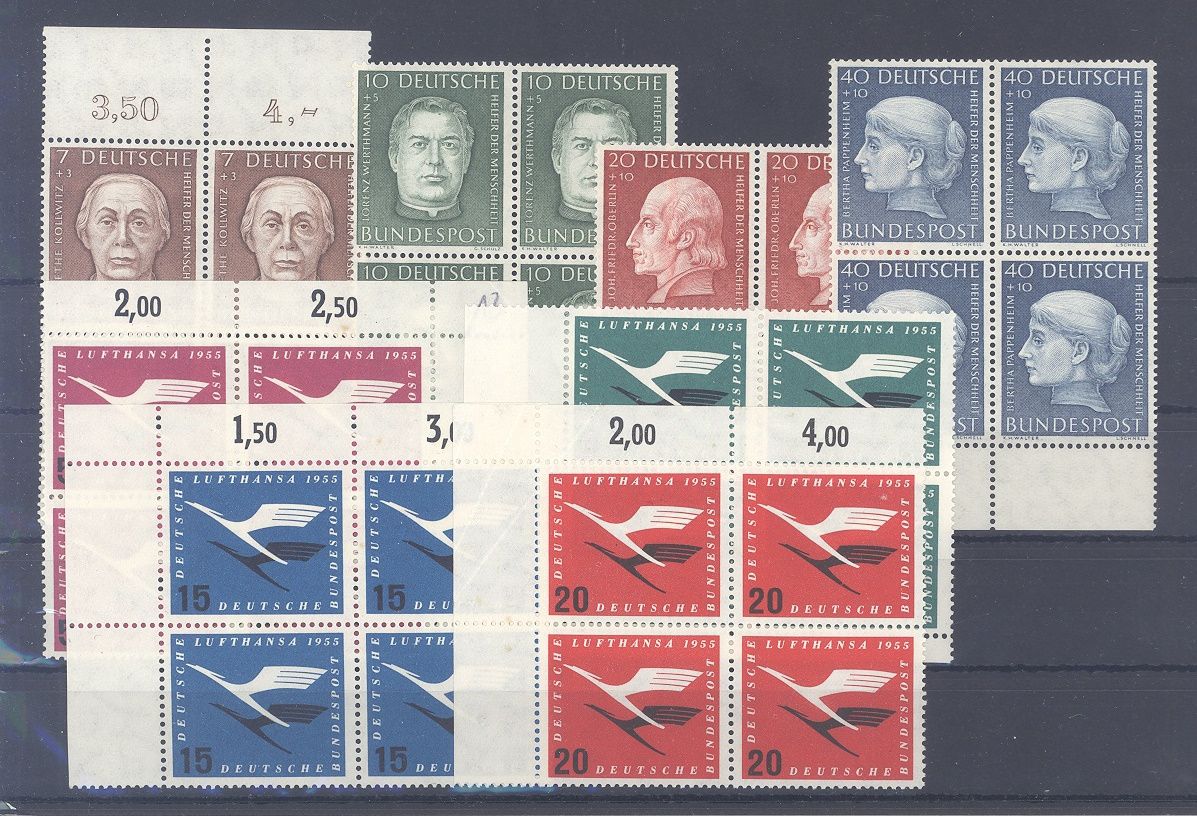 Bund, ** Posten Viererblöcke der Michel Nummern 200/03 und 205/08. Nette Ergänzung zur Sammlung.