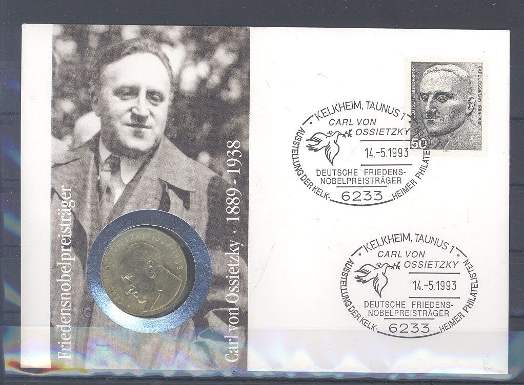 Bund, sauberer Numisbrief aus dem Jahr 1993 bestückt mit 5 Mark Ossietzky , Jäger Nummer 1628. Nette Ergänzung zur Sammlung.