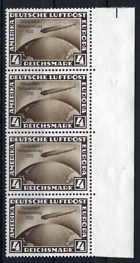 C) DR Chicagofahrt 1933, Mi 498 ** , senkrechte Viererstreifen in tadelloser Qualität und ungefaltet, ME 1.400€
