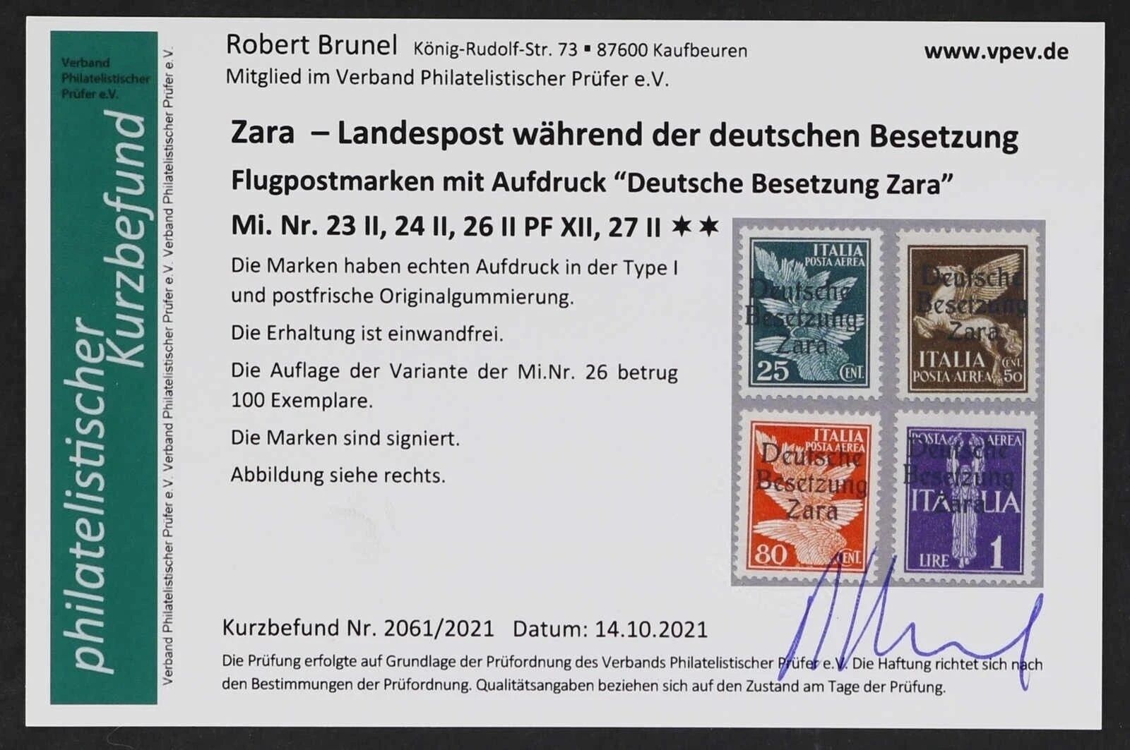 D. Bes. Zara, Mi 23-24II, 26II PF XII, 27II **, einwandfrei