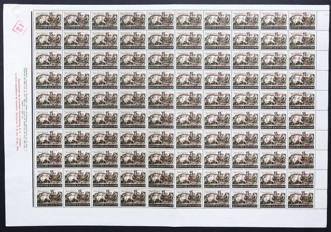 Deutsche Besetzung II. WK Mazedonien/Makedonien, Mi 5 II Ganzbogen in postfrischer Erhaltung mit 4 Plattenfehlern "3, 4, 5, 9, links oben mit Bogenkontrollnummer, ME ca. 2.660€, gefaltet
