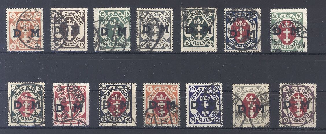 Danzig Dienst Michel Nummer 1/14, Freimarken 1921 gestempelt. Der Wert ist geprüft Infla.