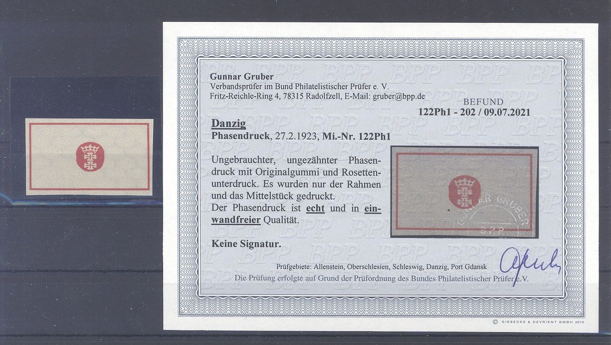 Danzig Michel Nummer 122, 5000 Mark Freimarke 1923 als Phasendruck. Es liegt ein Befund BPP vor, hat bereits einiges gekostet, ist mit eingescannt, tolle Ergänzung zur Sammlung!
