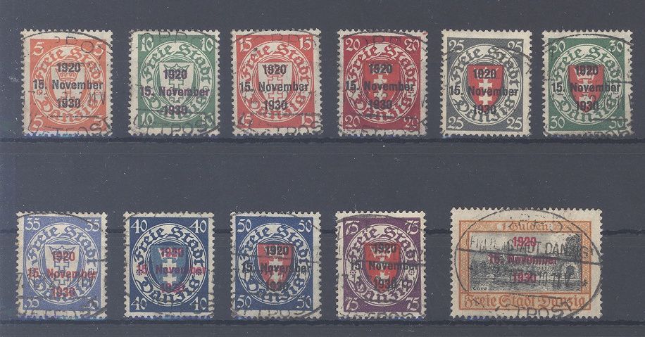 Danzig Michel Nummer 220/30, die Überdruckausgabe 1930 gestempelt.