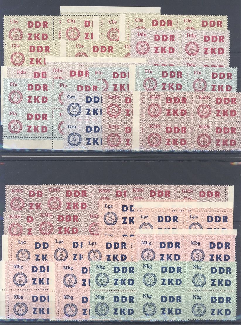 DDR Dienst Laufkontrollzettel, umfangreicher ** Posten Viererblöcke aus Michel Nummer 1/15 auf fünf Steckkarten, einfach zusammengesteckt. Billigst...
