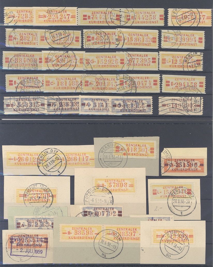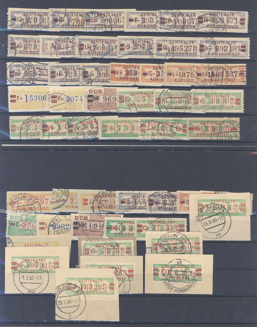 DDR Dienst ZKD, umfangreicher gestempelter Posten aus Michel Nummer 16/30 auf vier Steckkarten, einfach zusammengesteckt mit auch vielen Briefstücken. Vollkommen unberechnet, sollte ein nettes Schnäppchen sein.
